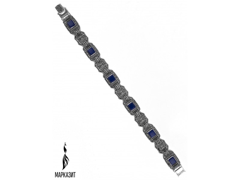 Серебряный Браслет арт. BR047 Марказит Swarovski, Лазурит