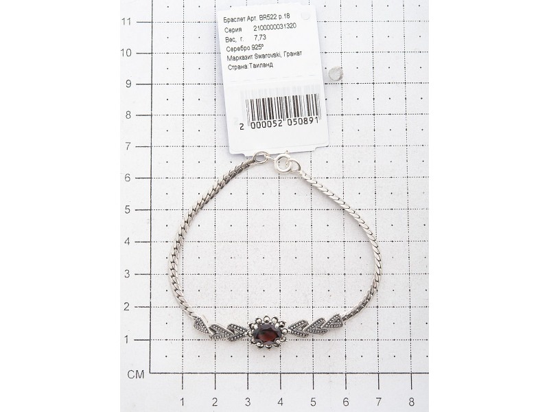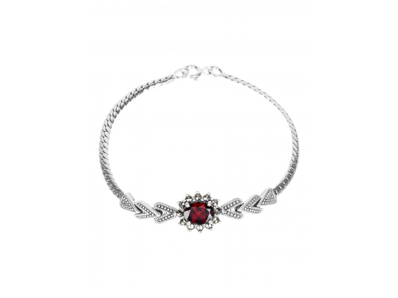 Серебряный Браслет арт. BR522 Марказит Swarovski, Гранат