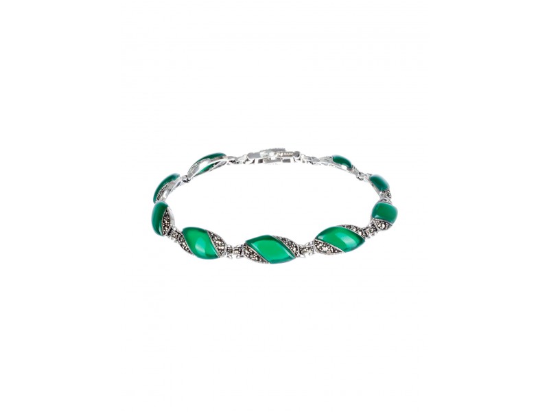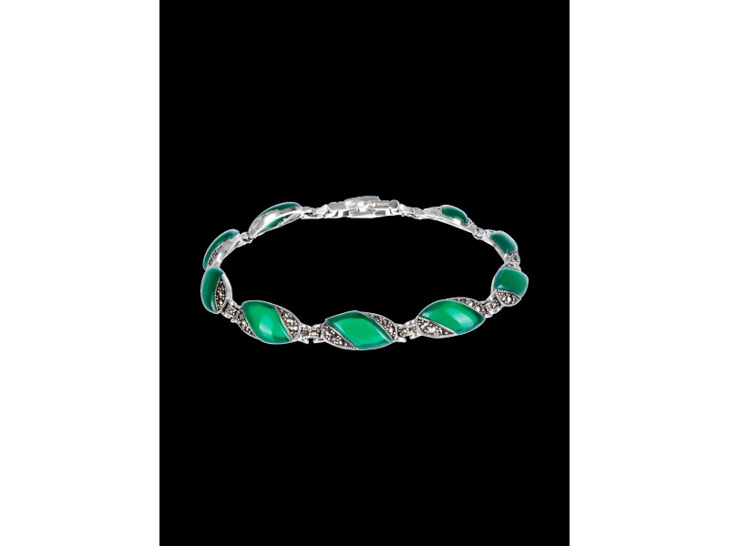 Серебряный Браслет арт. BR604 Марказит Swarovski, Хризопраз