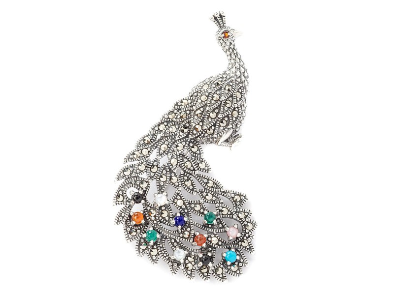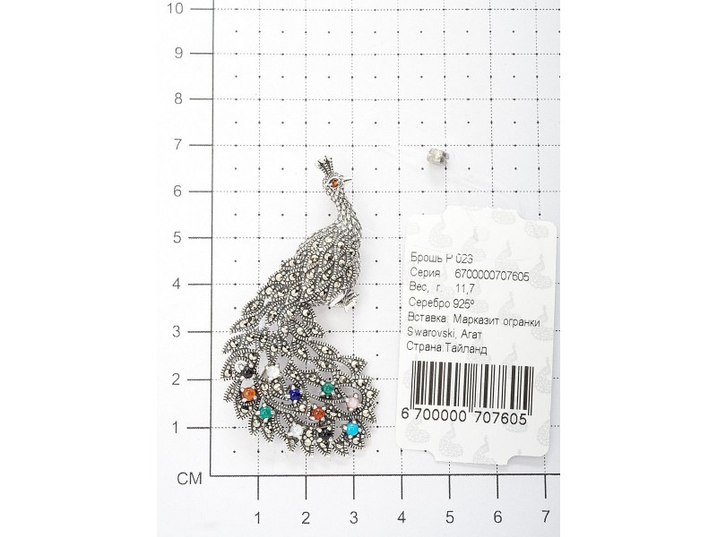 Серебряная Брошь арт. HB023 Марказит Swarovski, Бирюза, Гранат, Лазурит, Оникс, Перламутр, Сердолик, Хризопраз