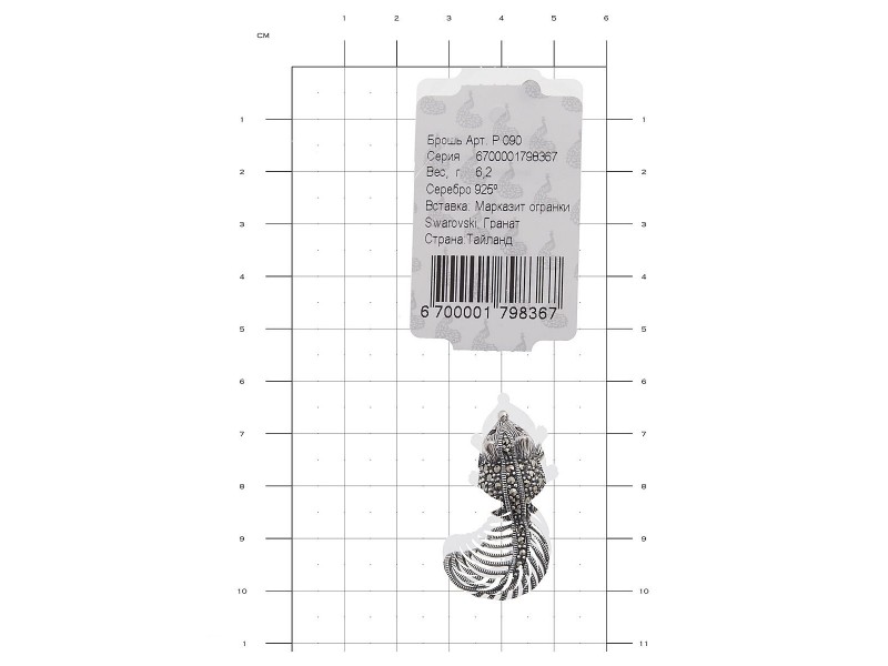 Серебряная Брошь арт. HB090 Марказит Swarovski, Гранат