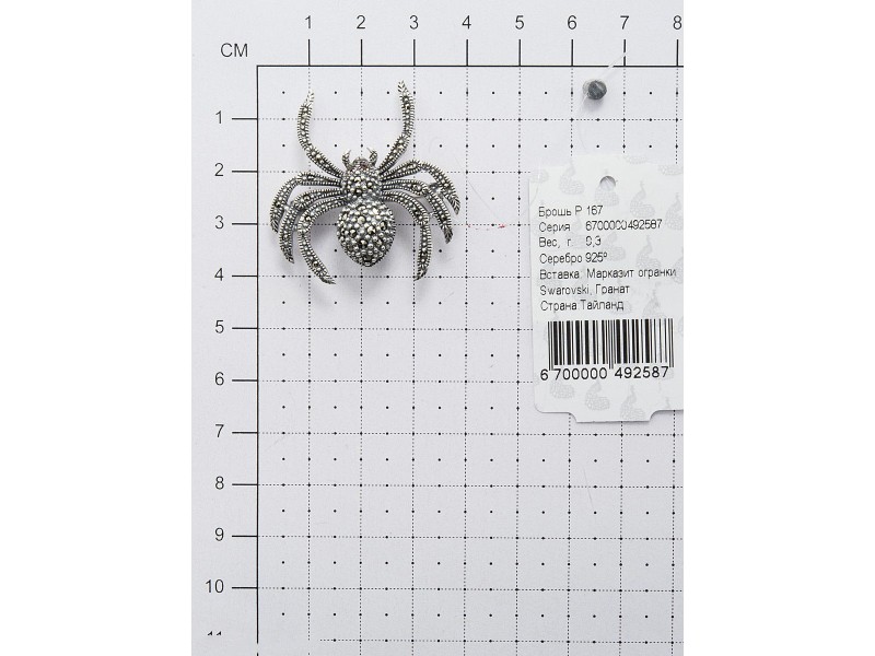Серебряная Брошь арт. HB167 Марказит Swarovski, Гранат