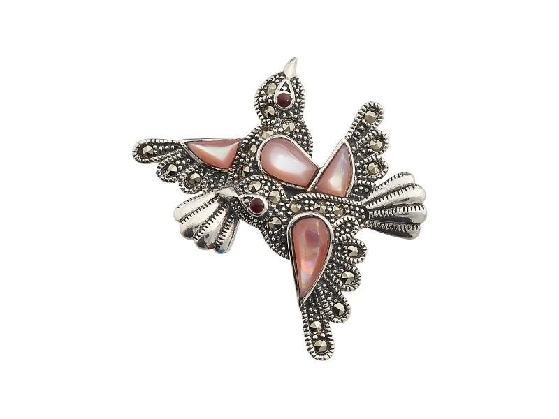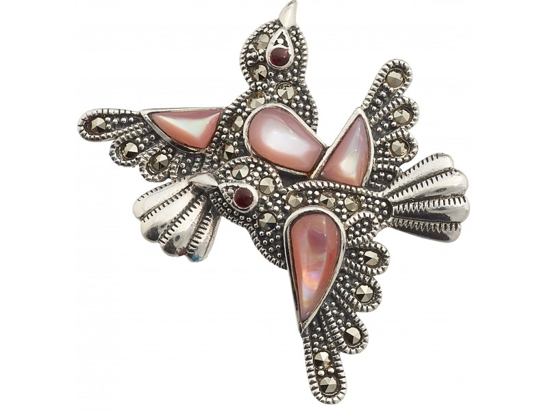 Серебряная Брошь арт. HB600 Марказит Swarovski, Перламутр розовый