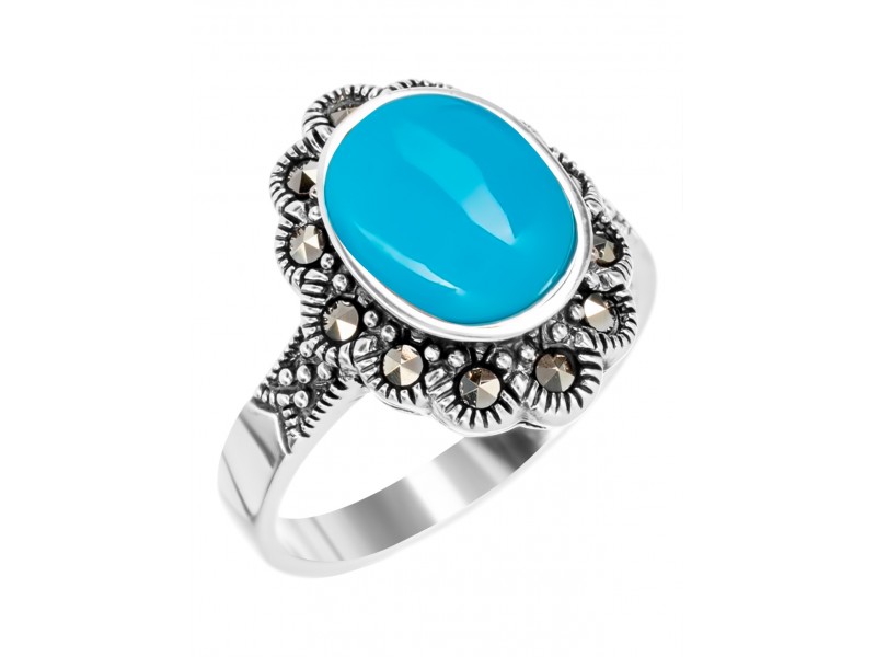 Серебряное Кольцо арт. HR092 Марказит Swarovski, Бирюза