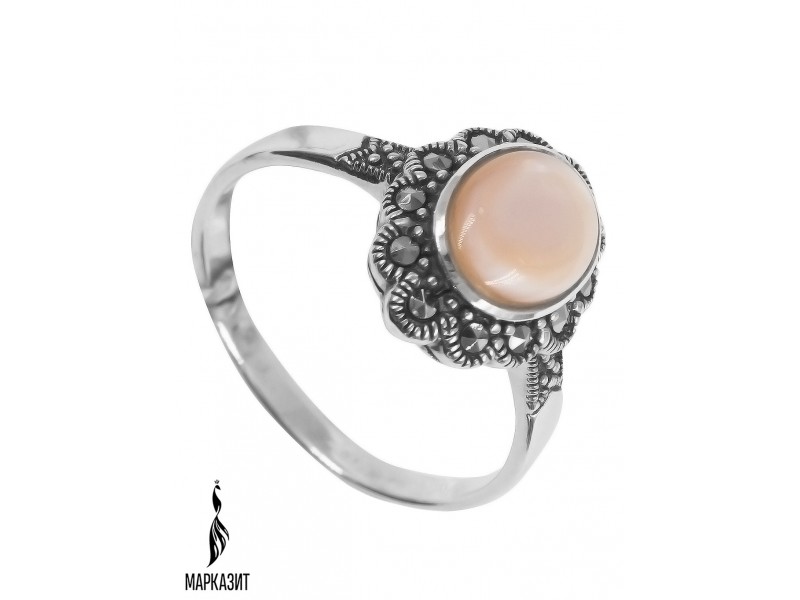 Серебряное Кольцо арт. HR092 Марказит Swarovski, Перламутр розовый