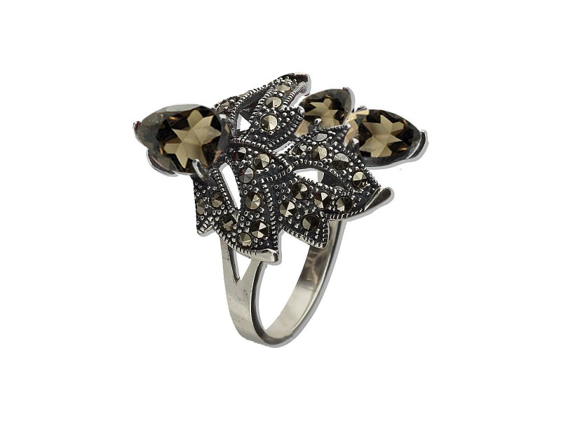 Серебряное Кольцо арт. HR1035 Марказит Swarovski, Топаз раух