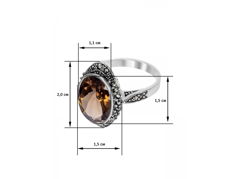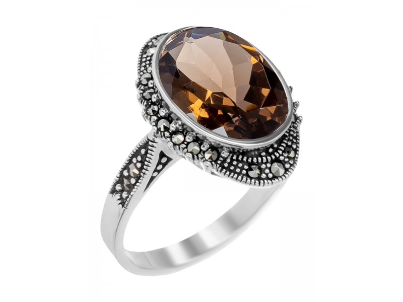 Серебряное Кольцо арт. HR1060 Марказит Swarovski, Топаз раух