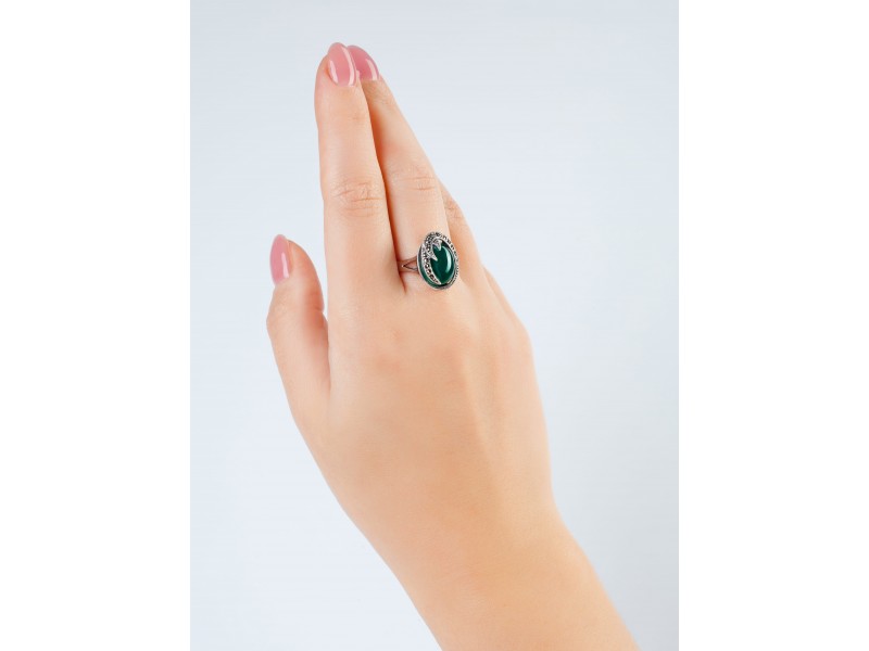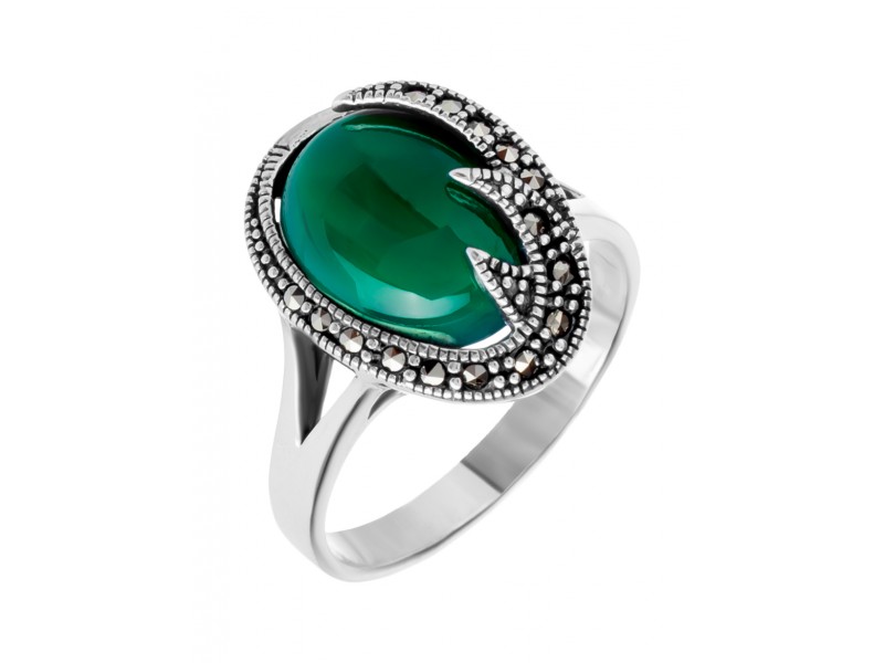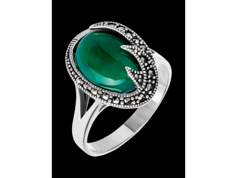 Серебряное Кольцо арт. HR1178 Марказит Swarovski, Хризопраз