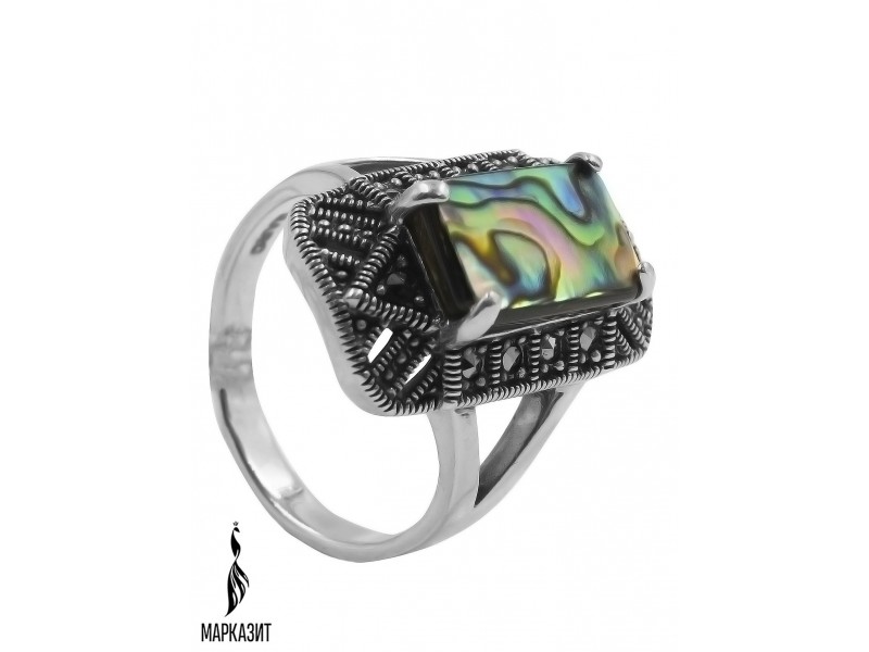 Серебряное Кольцо арт. HR122 Марказит Swarovski, Перламутр абалон