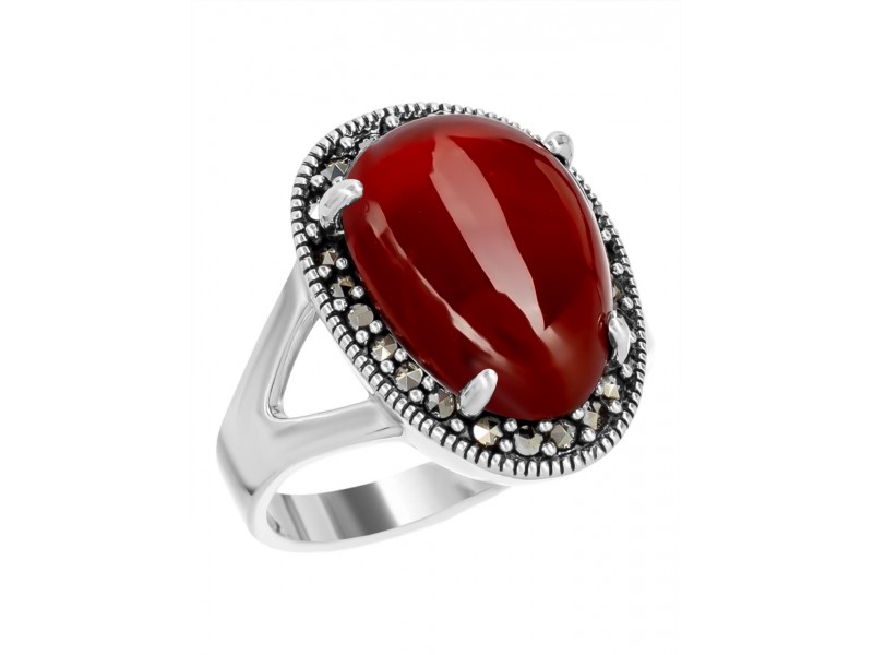 Серебряное Кольцо арт. HR1765 Марказит Swarovski, Сердолик