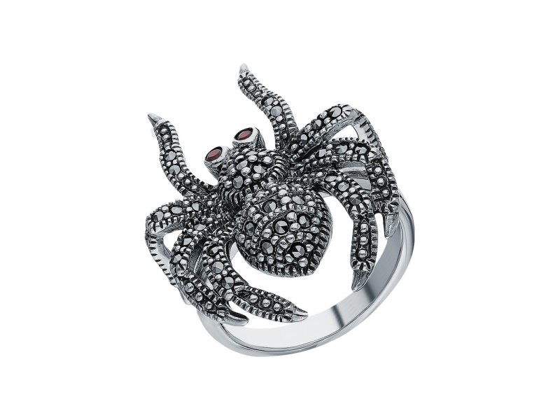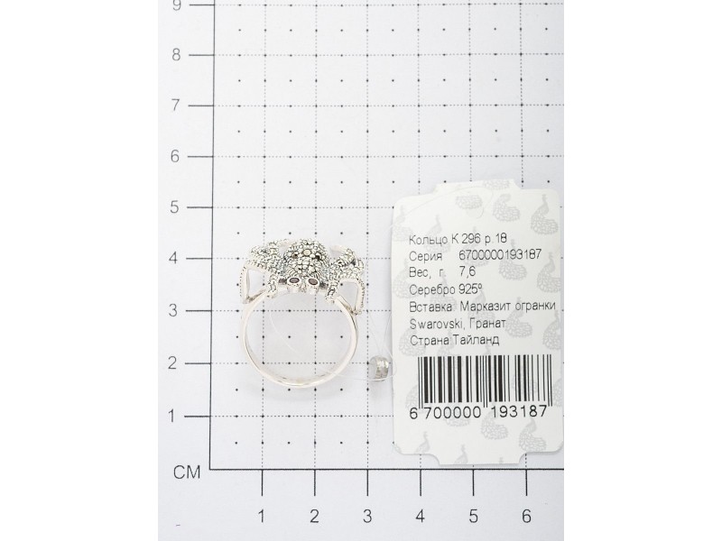 Серебряное Кольцо арт. HR296 Марказит Swarovski, Гранат