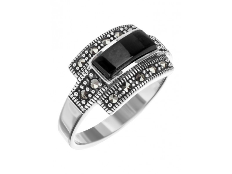 Серебряное Кольцо арт. HR344 Марказит Swarovski, Оникс
