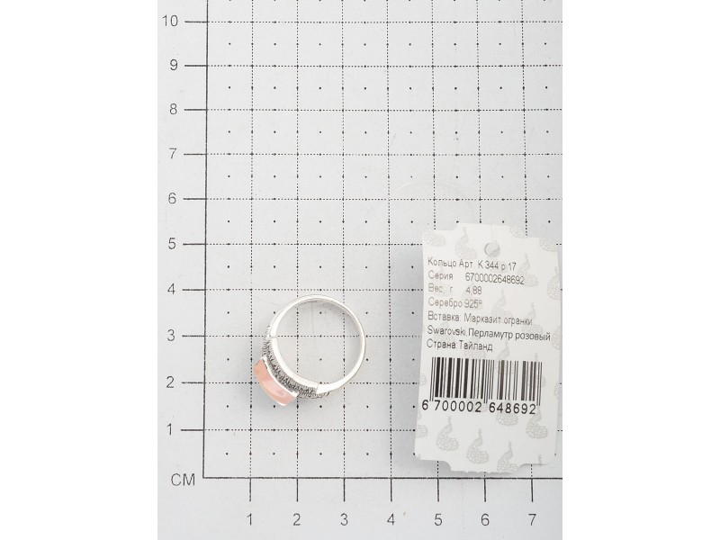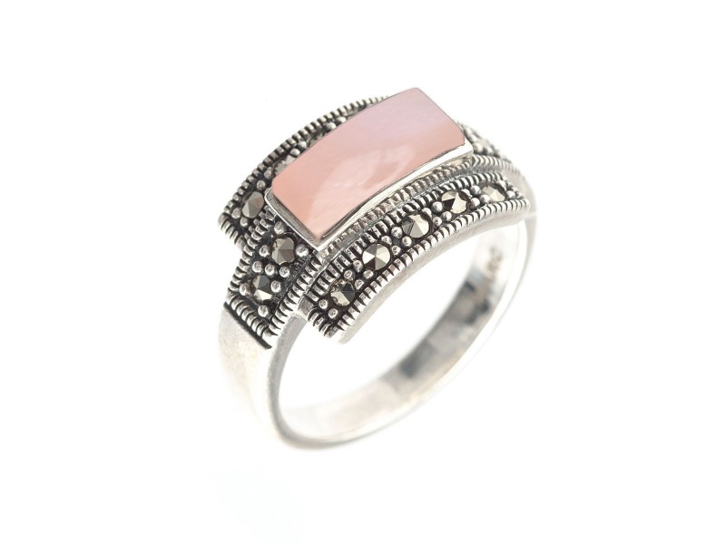 Серебряное Кольцо арт. HR344 Марказит Swarovski, Перламутр розовый