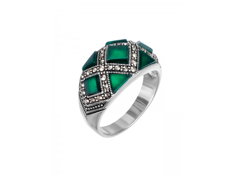 Серебряное Кольцо арт. HR355 Марказит Swarovski, Хризопраз