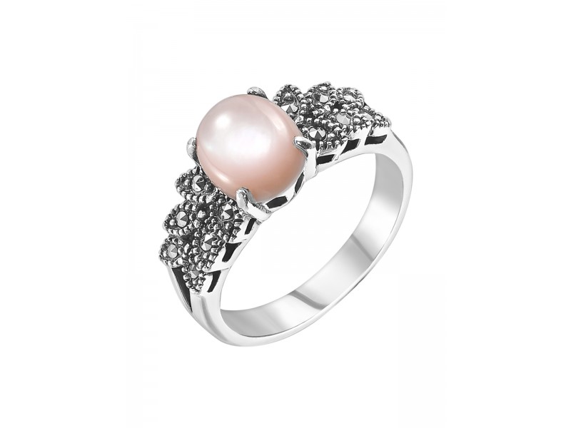 Серебряное Кольцо арт. HR440 Марказит Swarovski, Перламутр розовый