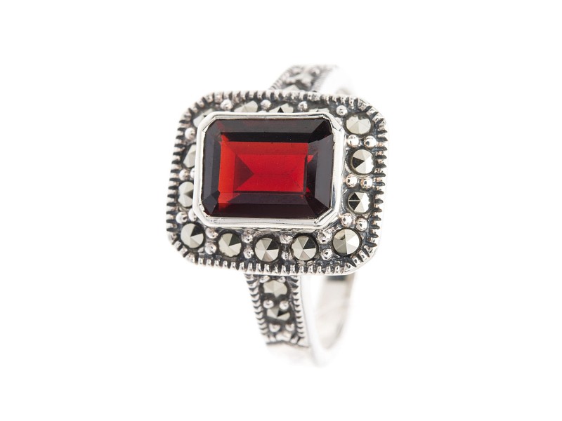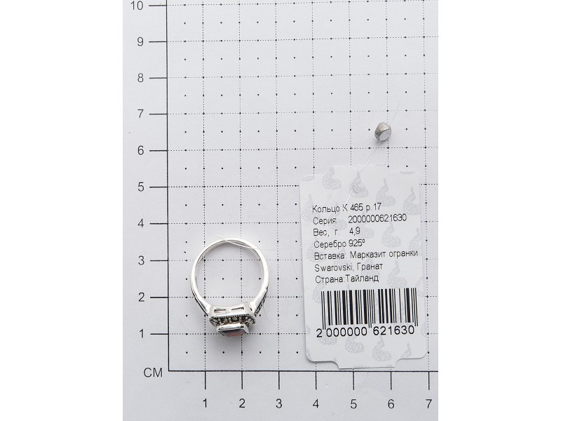 Серебряное Кольцо арт. HR465 Марказит Swarovski, Гранат