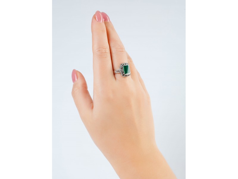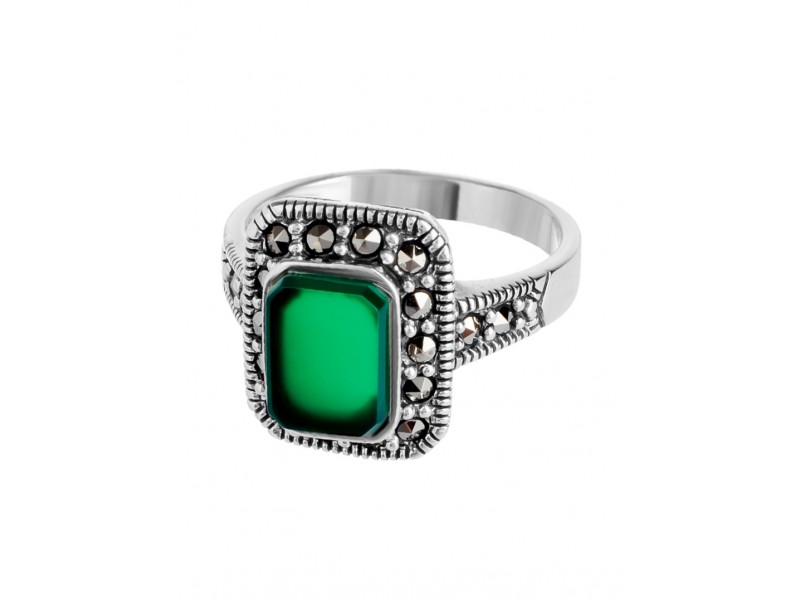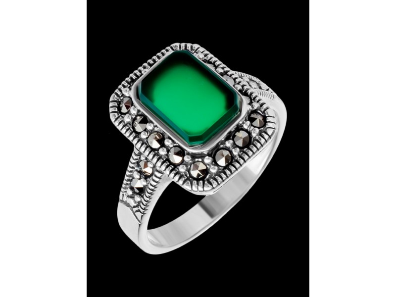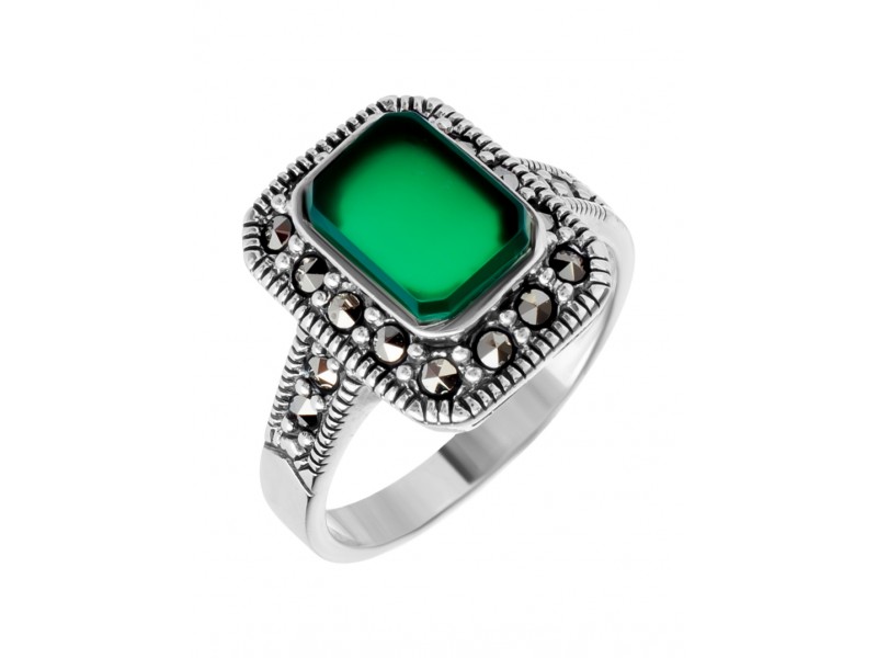 Серебряное Кольцо арт. HR465 Марказит Swarovski, Хризопраз