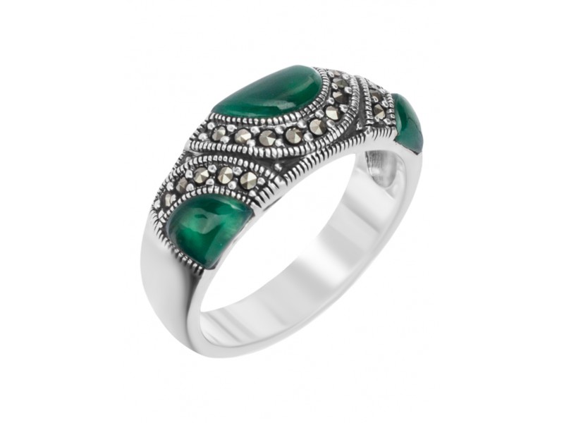 Серебряное Кольцо арт. HR497 Марказит Swarovski, Хризопраз