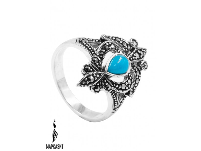 Серебряное Кольцо арт. HR651 Марказит Swarovski, Бирюза