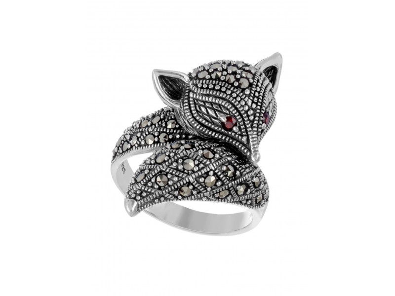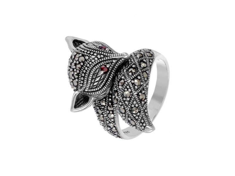 Серебряное Кольцо арт. HR781 Марказит Swarovski, Гранат