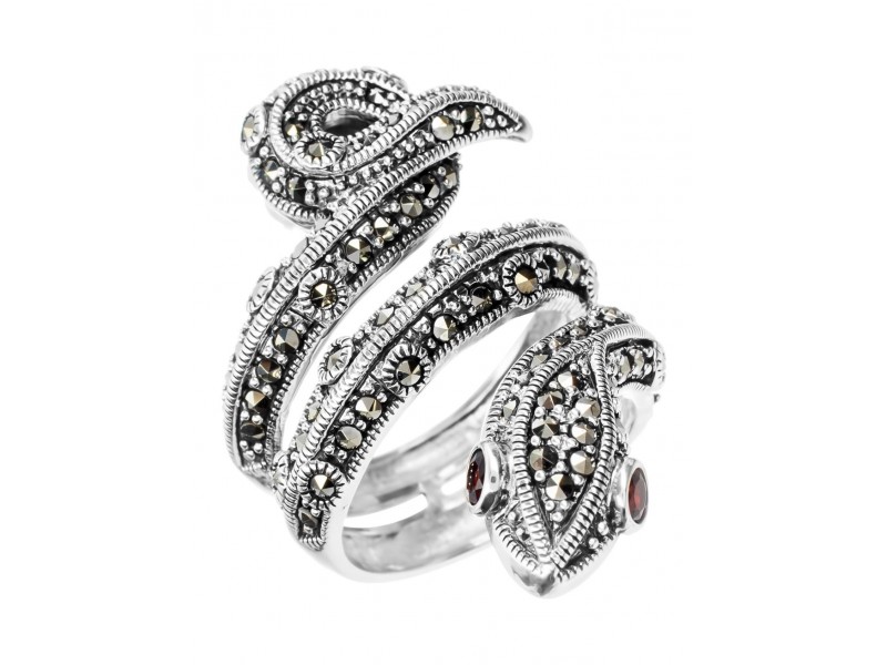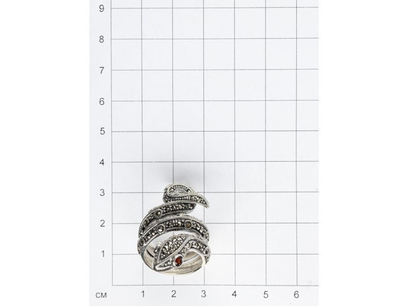 Серебряное Кольцо арт. HR859 Марказит Swarovski, Гранат