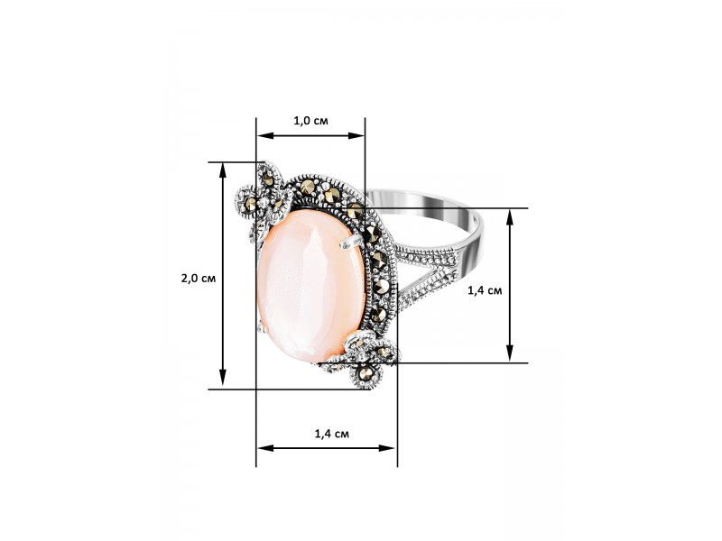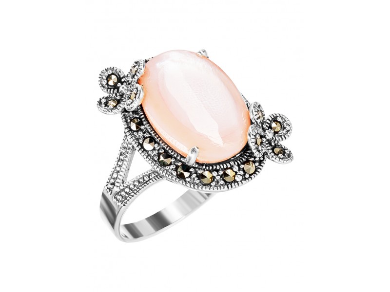 Серебряное Кольцо арт. HR985 Марказит Swarovski, Перламутр розовый
