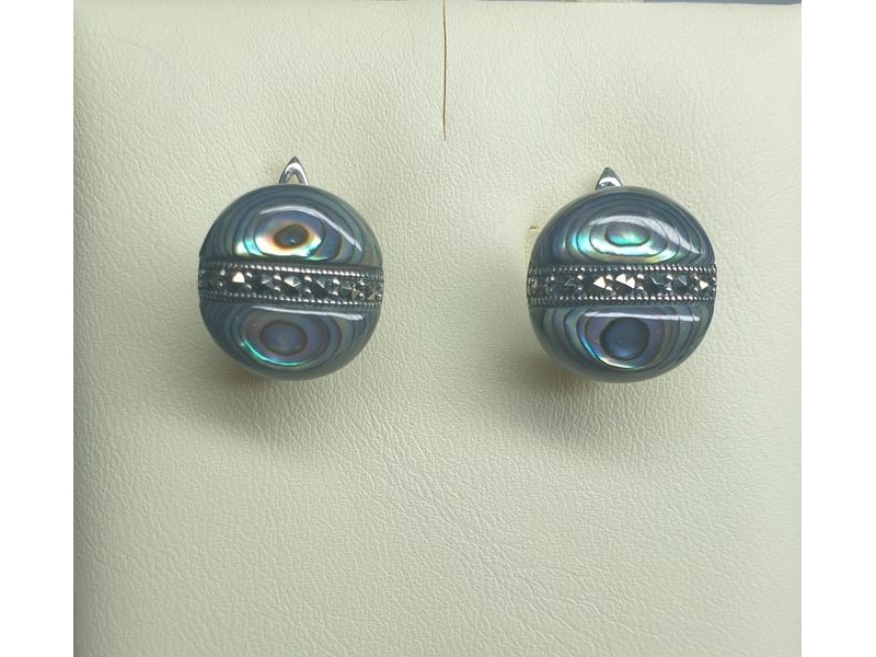 Серебряное Серьги арт. HE0060 Марказит, Перламутр абалон