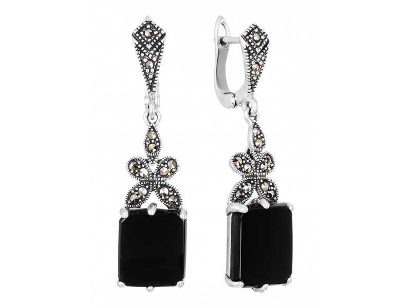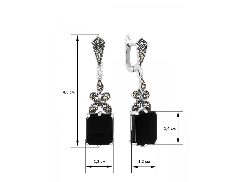 Серебряные Серьги арт. HE1026 Марказит Swarovski, Оникс