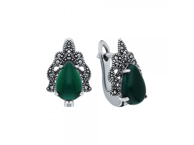 Серебряные Серьги арт. HE131 Марказит Swarovski, Хризопраз
