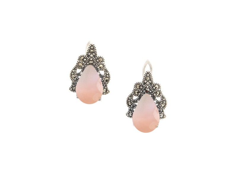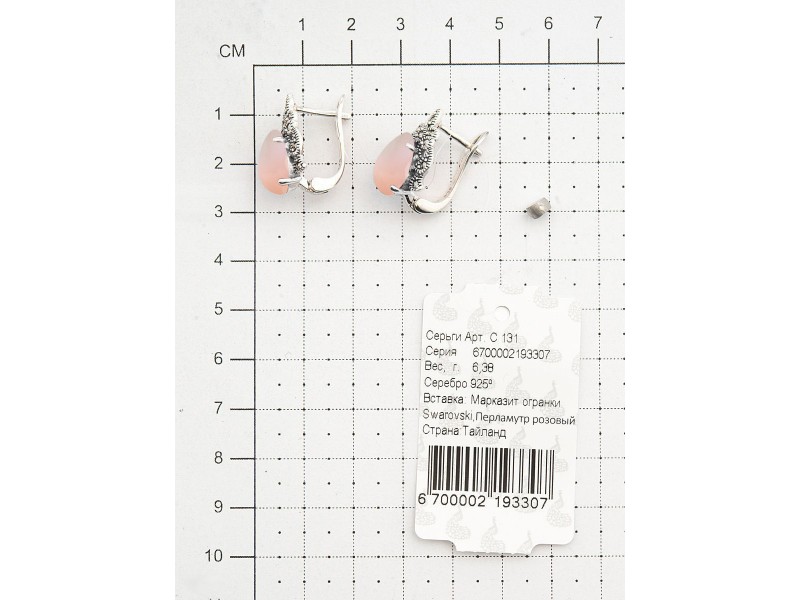 Серебряные Серьги арт. HE131 Марказит Swarovski, Перламутр розовый