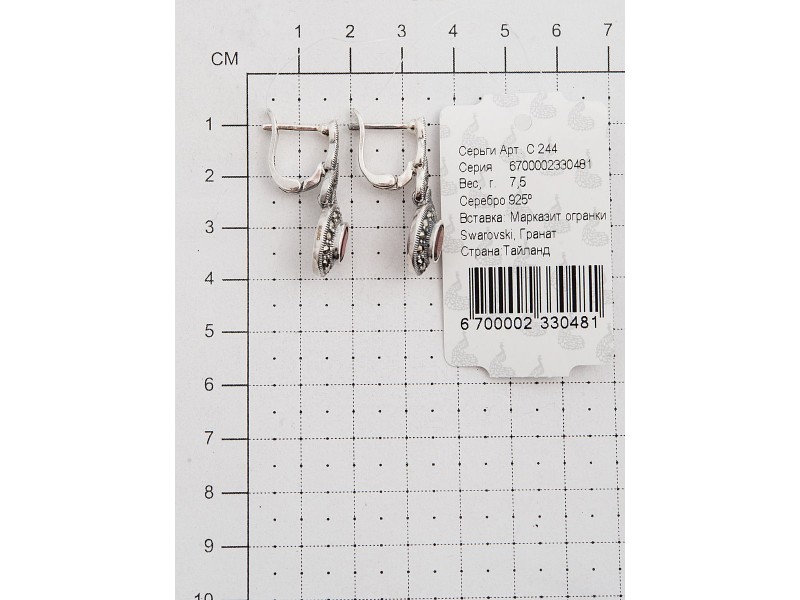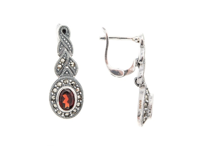 Серебряные Серьги арт. HE244 Марказит Swarovski, Гранат