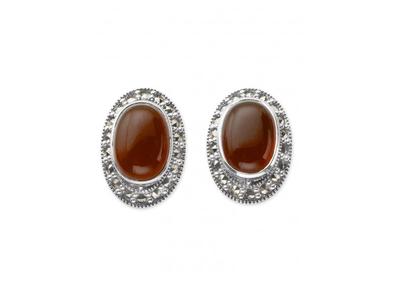 Серебряные Серьги арт. HE325 Марказит Swarovski, Сердолик