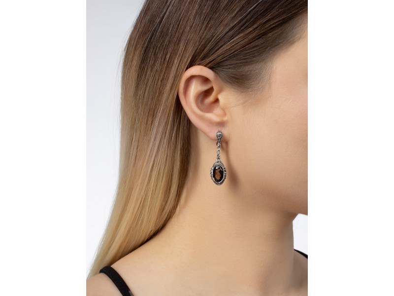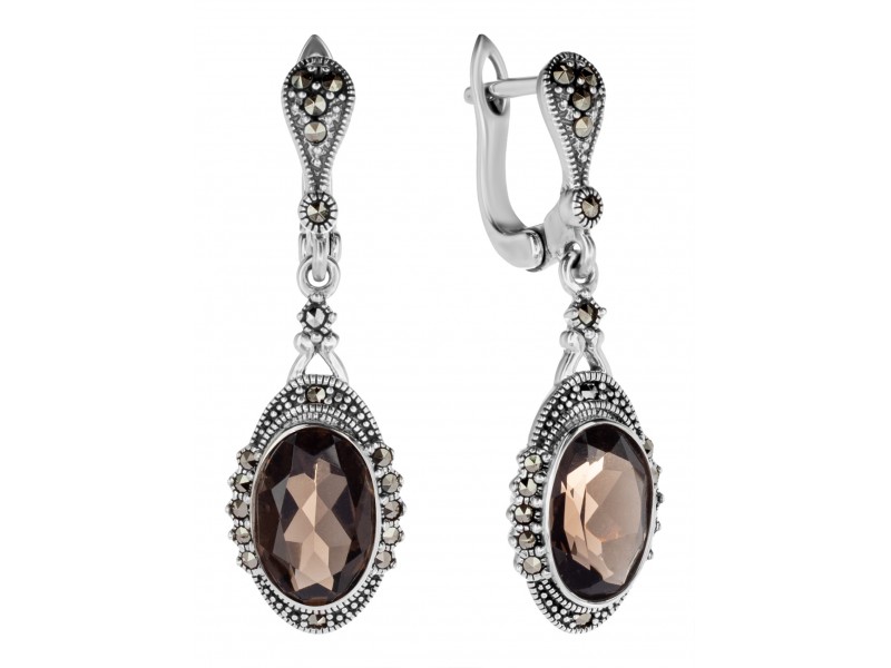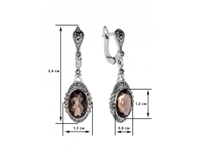 Серебряные Серьги арт. HE976 Марказит Swarovski, Топаз раух